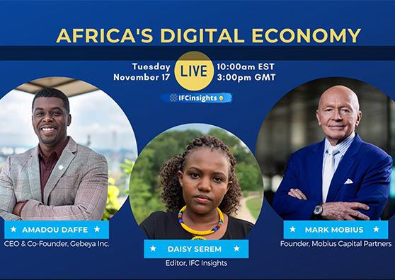 Ever wanted to eavesdrop on a conversation between an investor and the CEO of a tech start-up? IFC Insights Live gave scores of viewers the chance to do that last month when investor Mark Mobius and Gebeya CEO Amadou Daffe joined Insights coeditor Daisy Serem to share their thoughts on Africa’s tech ecosystem. In a candid discussion, they explored the qualities that attract investors, how to train more people for digital careers, and much more. Click to watch the 30-minute conversation. Some of their most compelling insights follow.